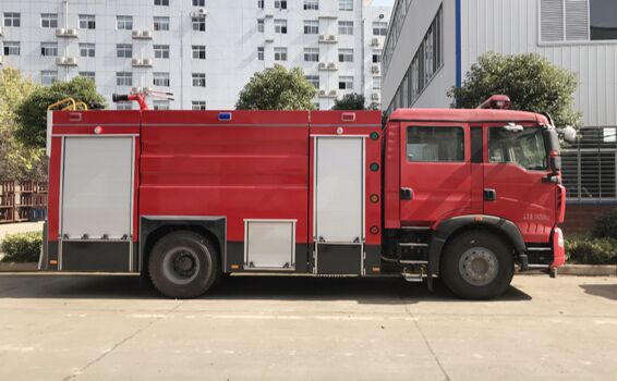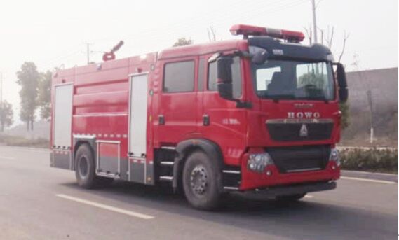 重汽T5G消防車整車動力性能優(yōu)越,穩(wěn)定可靠,技術(shù)先進,反應(yīng)快速,操作簡便,器材配置齊全,具備全套消防功能,經(jīng)濟性、舒適性均達國際先進水平,安全性、可靠性與國際接軌,是消防隊常備的消防車輛。車上除了裝備消防水泵及器材以外,還設(shè)有大容量的貯水罐及水槍、水炮等,可將水和消防人員輸送至火場獨立撲救火災(zāi)。它可由消防栓直接供水,也可以從水源吸水直接進行撲救,或向其他滅火噴射裝置供水,整車由消防員乘員室和車身兩大部分組成,乘員室為單原廠雙排座,可乘坐2+4人,該車為外露罐結(jié)構(gòu),車身前部為器材箱,中部為水罐,后部為泵房。載液罐體為優(yōu)質(zhì)碳鋼,內(nèi)部噴涂環(huán)氧底漆及環(huán)氧瀝青漆,與底盤采用彈性連接,載水6000kg(PM80)/8000kg(SG80),泡沫液量2000kg(PM80),裝備了上海雄真消防設(shè)備有限公司生產(chǎn)CB10.60型中低壓消防泵,額定流量60L/S,車頂安裝成都威斯特消防機械有限公司生產(chǎn)的PL48(PM80)或PS60W(SG80)型車用消防炮。該車最大的特點是載液量大、操控性好、維修簡便。可廣泛應(yīng)用于公安消防隊、廠礦企業(yè)及社區(qū)、碼頭等場所,撲救大型油脂類火災(zāi)和一般性物質(zhì)火災(zāi)。