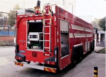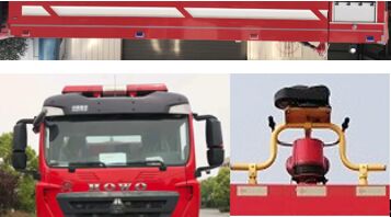 重汽24噸泡沫消防車采用重汽豪沃ZZ5447TXFV466MF1底盤改裝而成。整車由消防員乘員室和車身兩大部分組成,乘員室為原裝單排,可乘坐2人,該車為外露罐結(jié)構(gòu),中部為罐體,后部為泵房。載液罐體為優(yōu)質(zhì)碳鋼,內(nèi)部噴涂環(huán)氧底漆及環(huán)氧瀝青漆,與底盤采用彈性連接,載水量21260kg,泡沫液量2990kg(PM240),裝備了上海茸申消防設(shè)備有限公司生產(chǎn)CB10/80-1RS型常壓消防泵,額定流量80L/S,車頂安裝成都威斯特消防機(jī)械有限公司生產(chǎn)的PL8/64型車用消防炮。該車最大的特點(diǎn)是載液量大、操控性好、維修簡(jiǎn)便?蓮V泛應(yīng)用于公安消防隊(duì)、廠礦企業(yè)及社區(qū)、碼頭等場(chǎng)所,撲救大型油類火災(zāi)和一般物質(zhì)火災(zāi)。