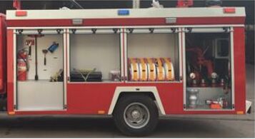 泵房位于整車后部,兩邊與后邊設(shè)鋁合金卷簾門,內(nèi)有照明燈,泵室兩側(cè)可放置部分常用器材