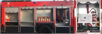 泵房位于整車后部,兩邊與后邊設(shè)鋁合金卷簾門,內(nèi)有照明燈,泵室兩側(cè)可放置部分常用器材