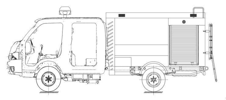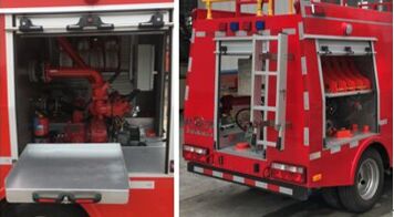 泵房位于整車后部,兩邊與后邊設(shè)鋁合金卷簾門,內(nèi)有照明燈,泵室兩側(cè)可放置部分常用器材